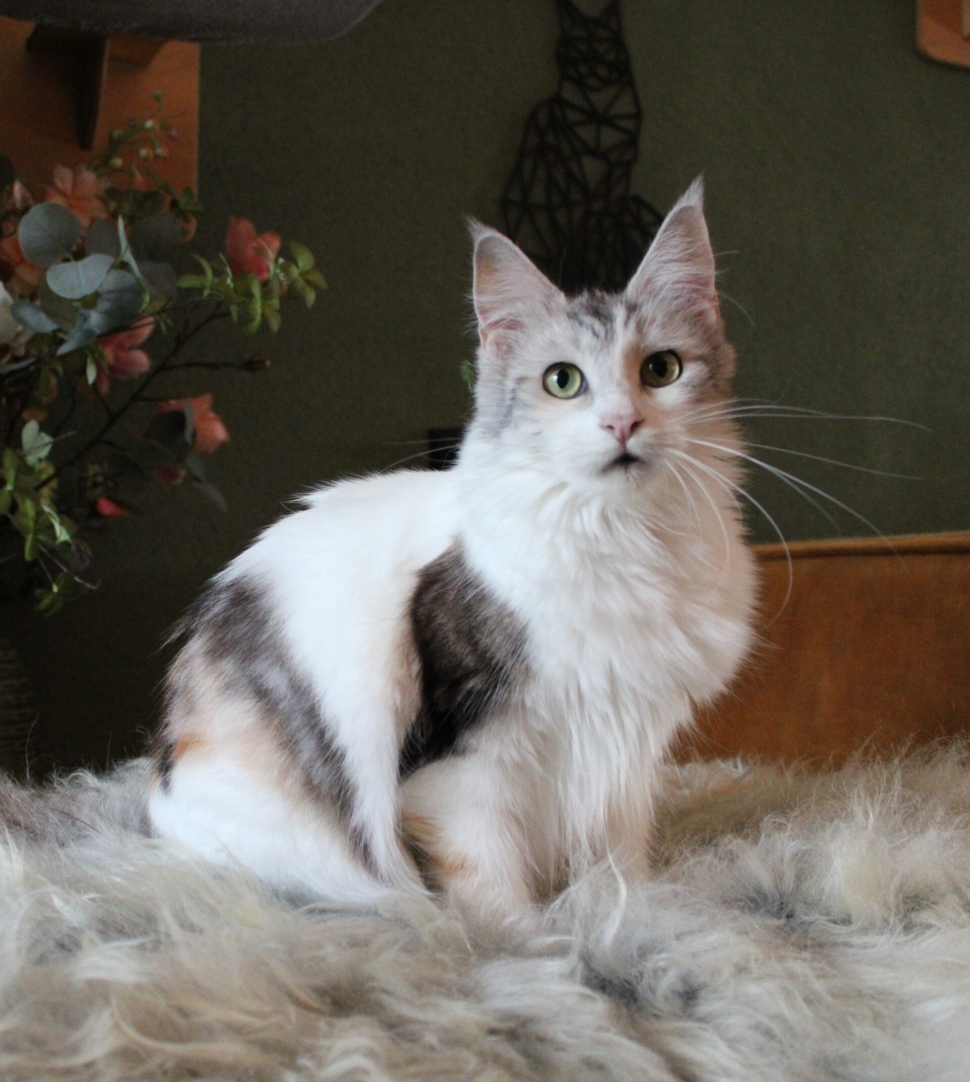 Gaia is minstens zo zachtaardig als haar halfzusje Freya, misschien nog wel meer want zij kan met alles en iedereen overweg. Zij is met recht het moederfiguur van onze groep en zorgt dan ook voor alle katten, wassen en spelen, ze doet het allemaal. Ook als er kittens zijn dan neemt ze die onder haar vleugel, ze zal nooit lelijk doen. Gaia is heel lief en komt regelmatig ook bij ons een knuffel halen.